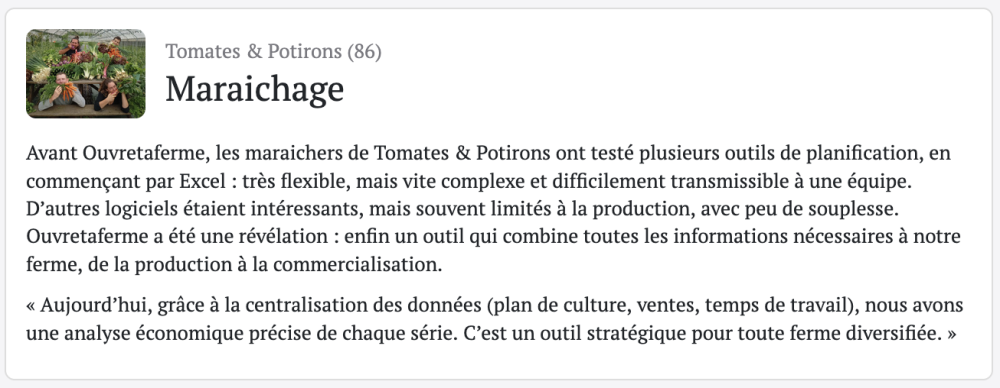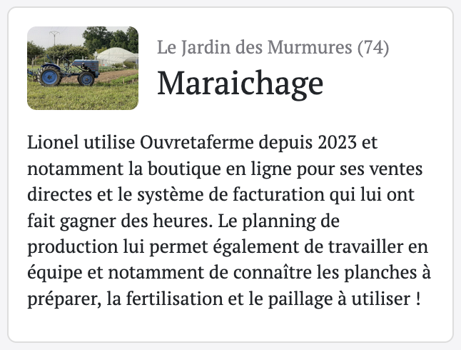 Lancé en 2020, Ouvretaferme est un logiciel de gestion destiné aux producteurs locaux et leur fournit un outil complet pour :